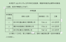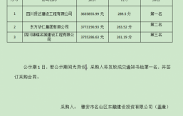 成雅工業(yè)園區(qū)百丈安置房二期項(xiàng)目鋼筋采購,根據(jù)有關(guān)法律、法規(guī)、規(guī)章的規(guī)定,于2023年4月21日經(jīng)雅安市名山區(qū)益業(yè)商貿(mào)有限公司競爭性談判比選流程,評(píng)審工作已經(jīng)結(jié)束,成交人已經(jīng)確定,現(xiàn)將成交結(jié)果公示如下:成交單位名稱:四川霞成商貿(mào)有限公司成交價(jià):加成價(jià)30元/噸進(jìn)場時(shí)間:待甲方通知成交質(zhì)量要求:合格自成交結(jié)果公示之日起一個(gè)工作日內(nèi),對(duì)成交結(jié)果無異議的,采購人將簽發(fā)成交通知書,并在五個(gè)工作日內(nèi)簽訂合同。雅安市名山區(qū)益業(yè)商貿(mào)有限公司2023年4月23日...