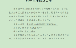 一、基本情況安居路德福社區(qū)與交警大隊(duì)之間(約10000平方米,已完成水泥地面硬化約5000平方米,其余為碎石硬化)、皇茶大道區(qū)人民醫(yī)院東側(cè)(約6200平方米,已完成水泥地面硬化)兩處臨時(shí)停車場,已完成配套道閘、監(jiān)控、門衛(wèi)室、廁所的建設(shè)。上述兩處停車場性質(zhì)為臨時(shí)停車場,無固定使用時(shí)間期限,如遇政府對(duì)上述2處臨時(shí)停車場有新的規(guī)劃使用方案,則隨時(shí)由我公司收回交由相關(guān)單位進(jìn)行處置?,F(xiàn)公司擬對(duì)上述兩處臨時(shí)停車場一并對(duì)外招租。二、招租要求(一)承租方負(fù)責(zé)現(xiàn)場其設(shè)備設(shè)施的日常管理維護(hù),并承擔(dān)安全生產(chǎn)和安保責(zé)任,負(fù)責(zé)門前三包所有區(qū)域的衛(wèi)生管護(hù)。以上所產(chǎn)生費(fèi)...